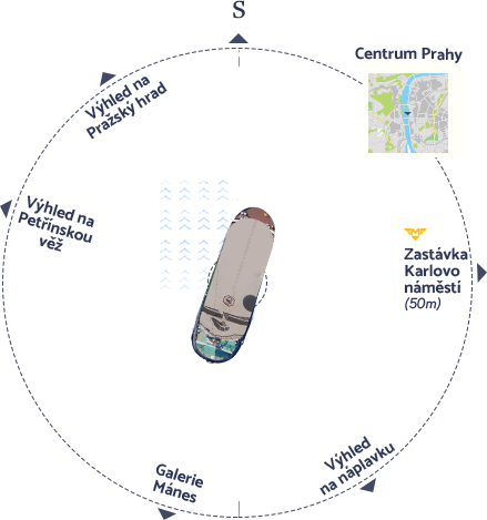 Kotvíme na náplavce mezi galerií Mánes a Tančícím domem.